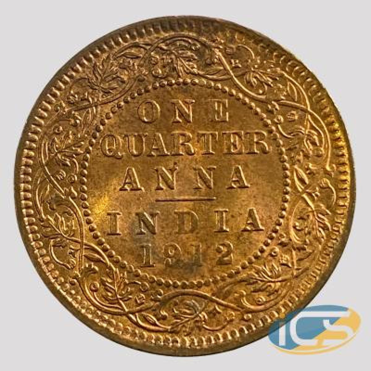 British India, King George V (1910-1936), ¼ Anna, 1912, Bronze, 4.85 g, 25.4 mm