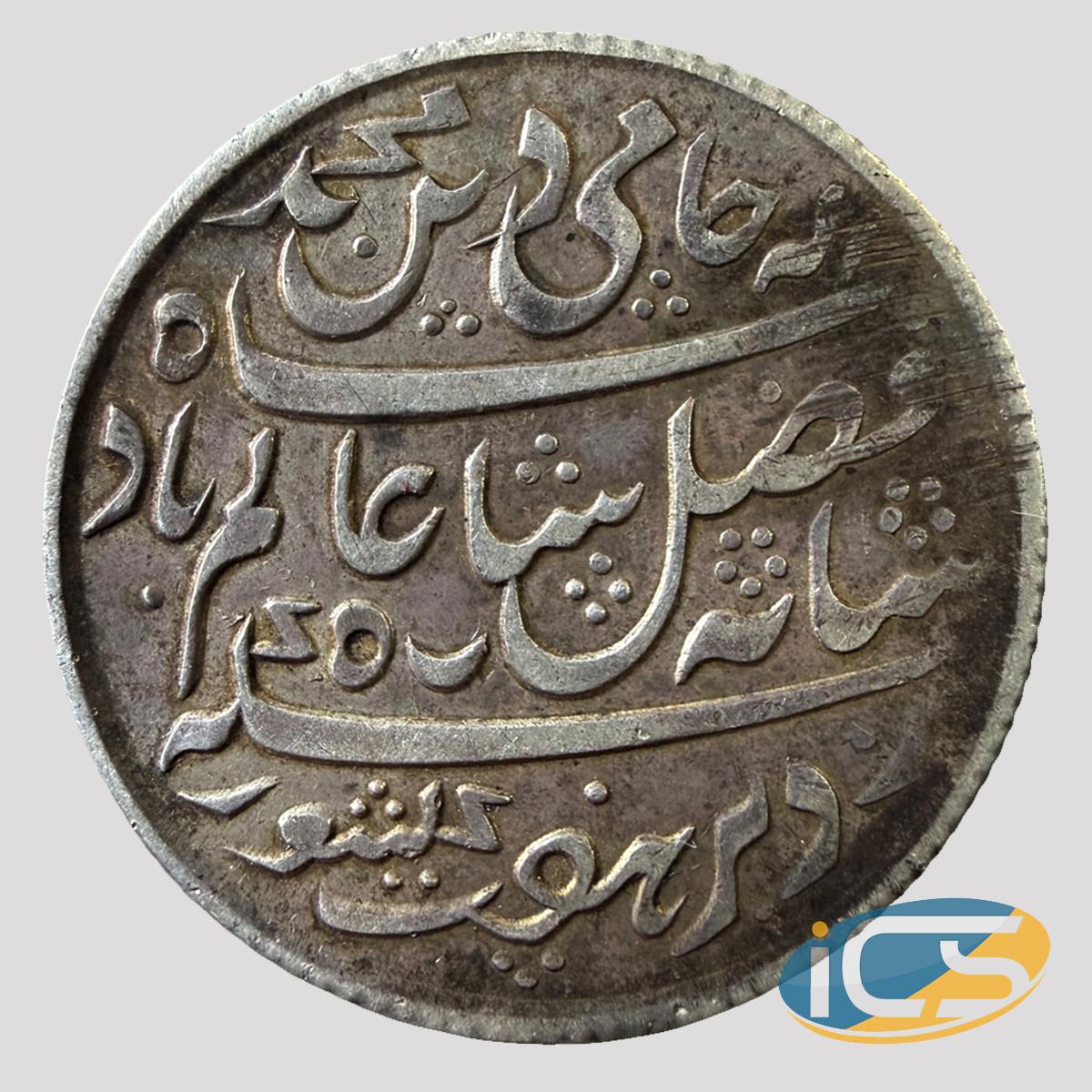 Obv: Persian legend "Sikka zad bar haft kishwar Saya-e fazle Elah, Hami dine Muhammad Shah Alam Badshah" with Hijri year 1202, Rev: Persian legend "Sana 19 julus" "zarb Murshidabad" at the bottom, 12.40 g, 28.66 mm