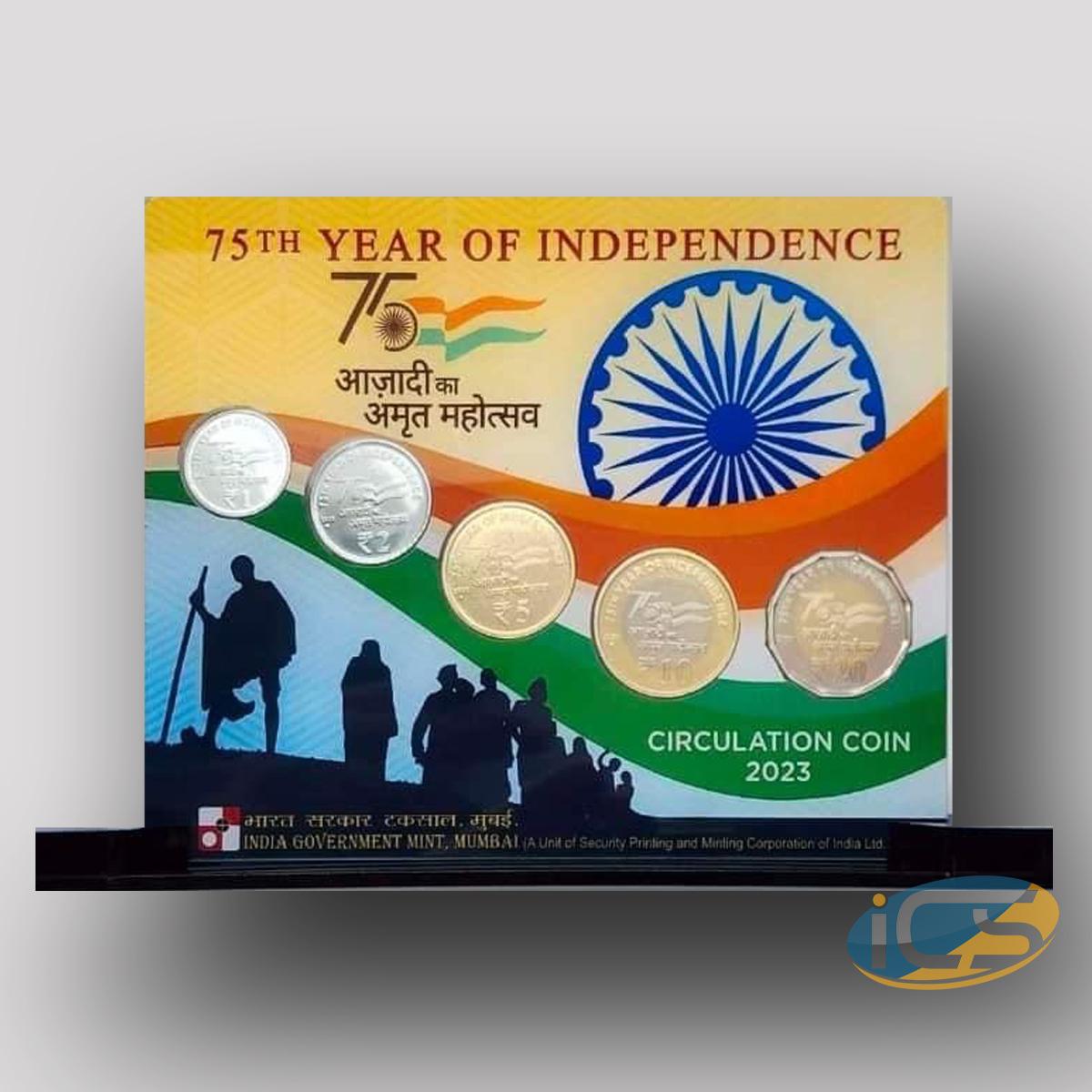 2023, Azadi ka Amrit Mahotsav, 5 coins set, Acrylic Stand Packing, issued by Mumbai Mint