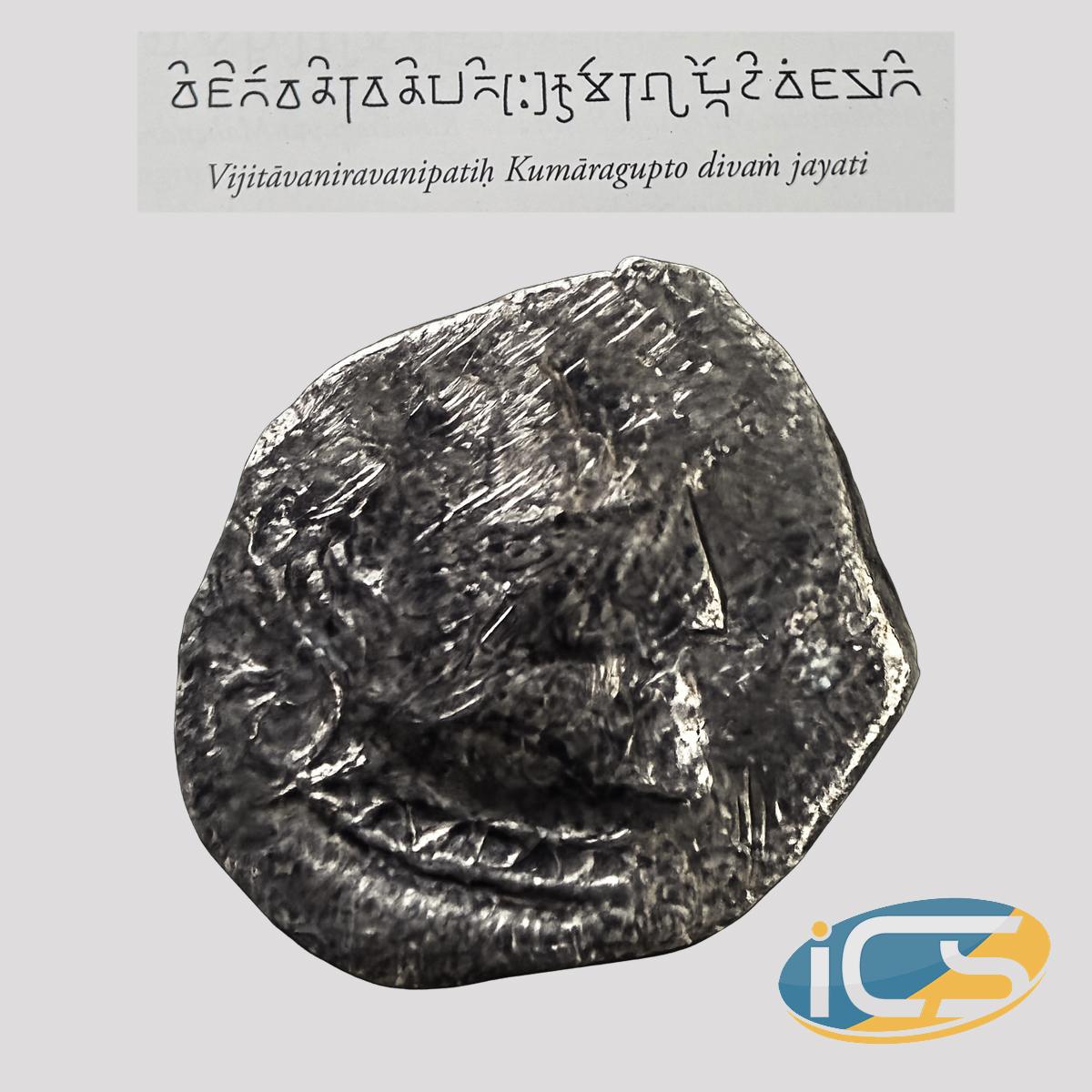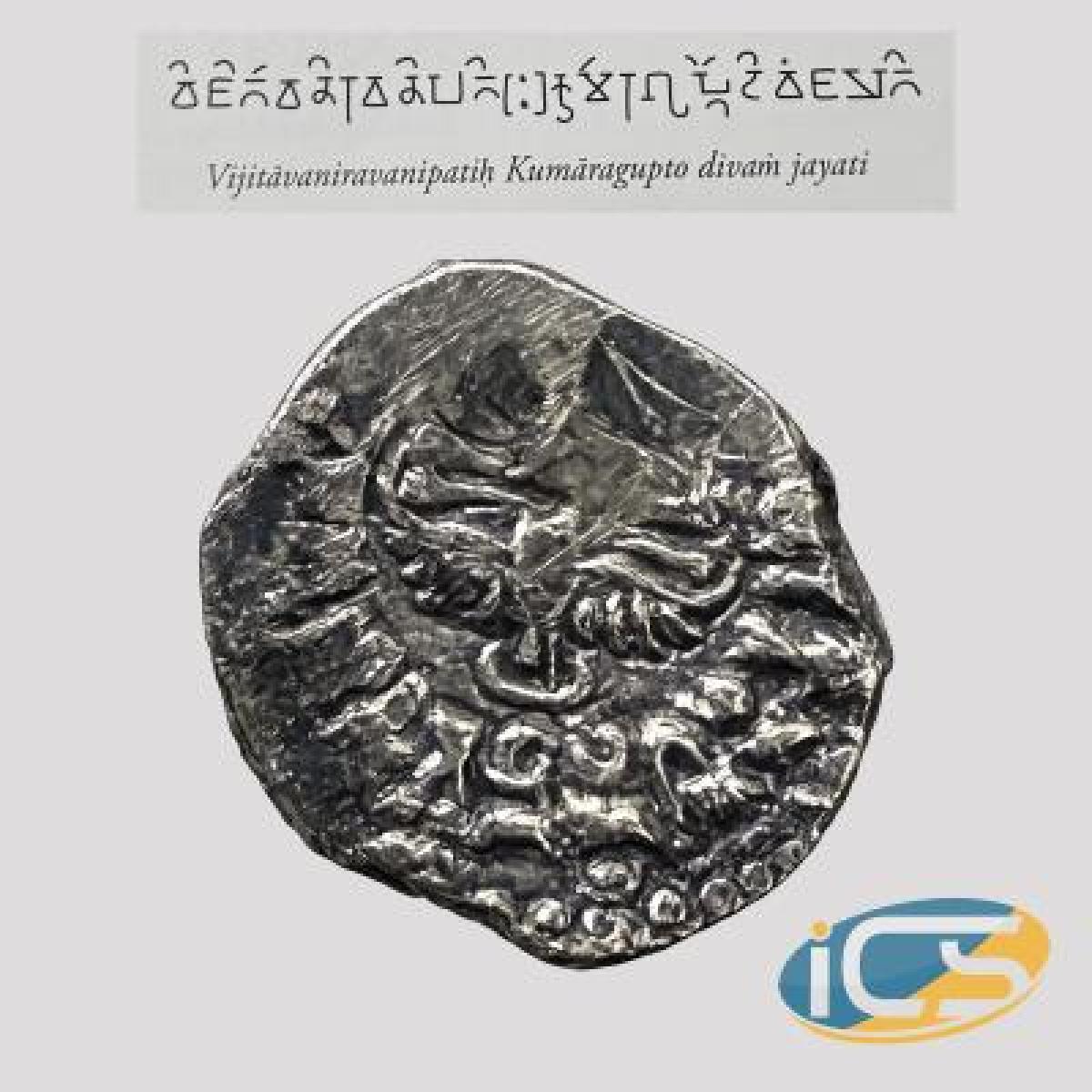 Brahmi Legend: Vijitavaniravanipati Kumara Gupto Divam Jayati (Translation: "Having conquered the Earth, the lord of the Earth, Kumara Gupta, wins the Heavens.").
