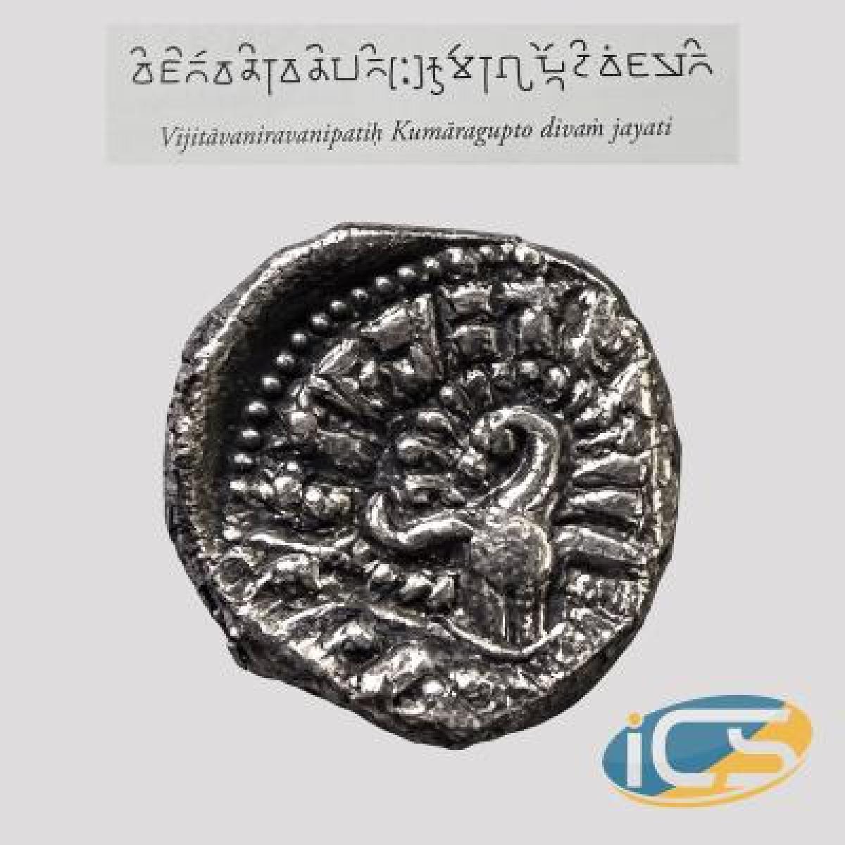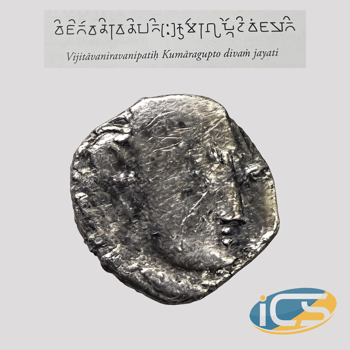 Brahmi Legend: Vijitavaniravanipati Kumara Gupto Divam Jayati (Translation: "Having conquered the Earth, the lord of the Earth, Kumara Gupta, wins the Heavens.").