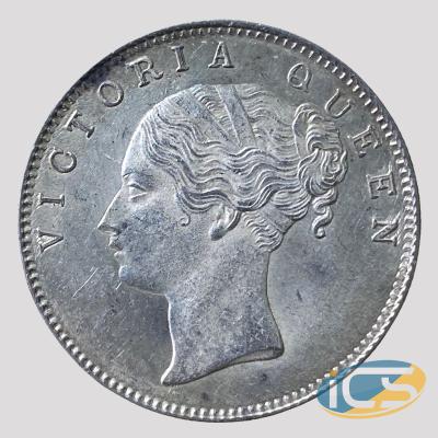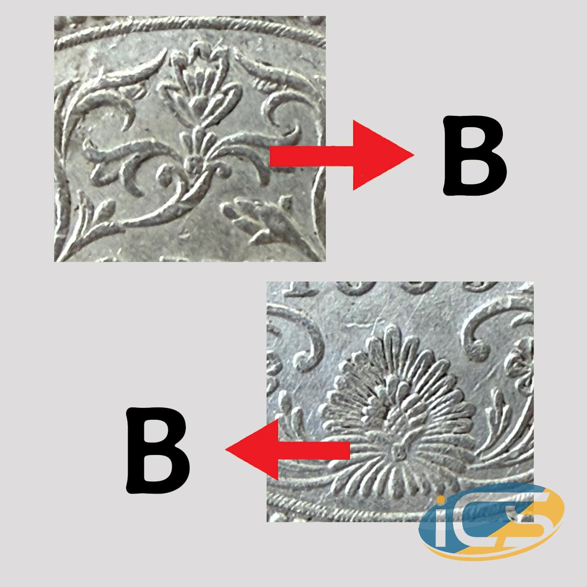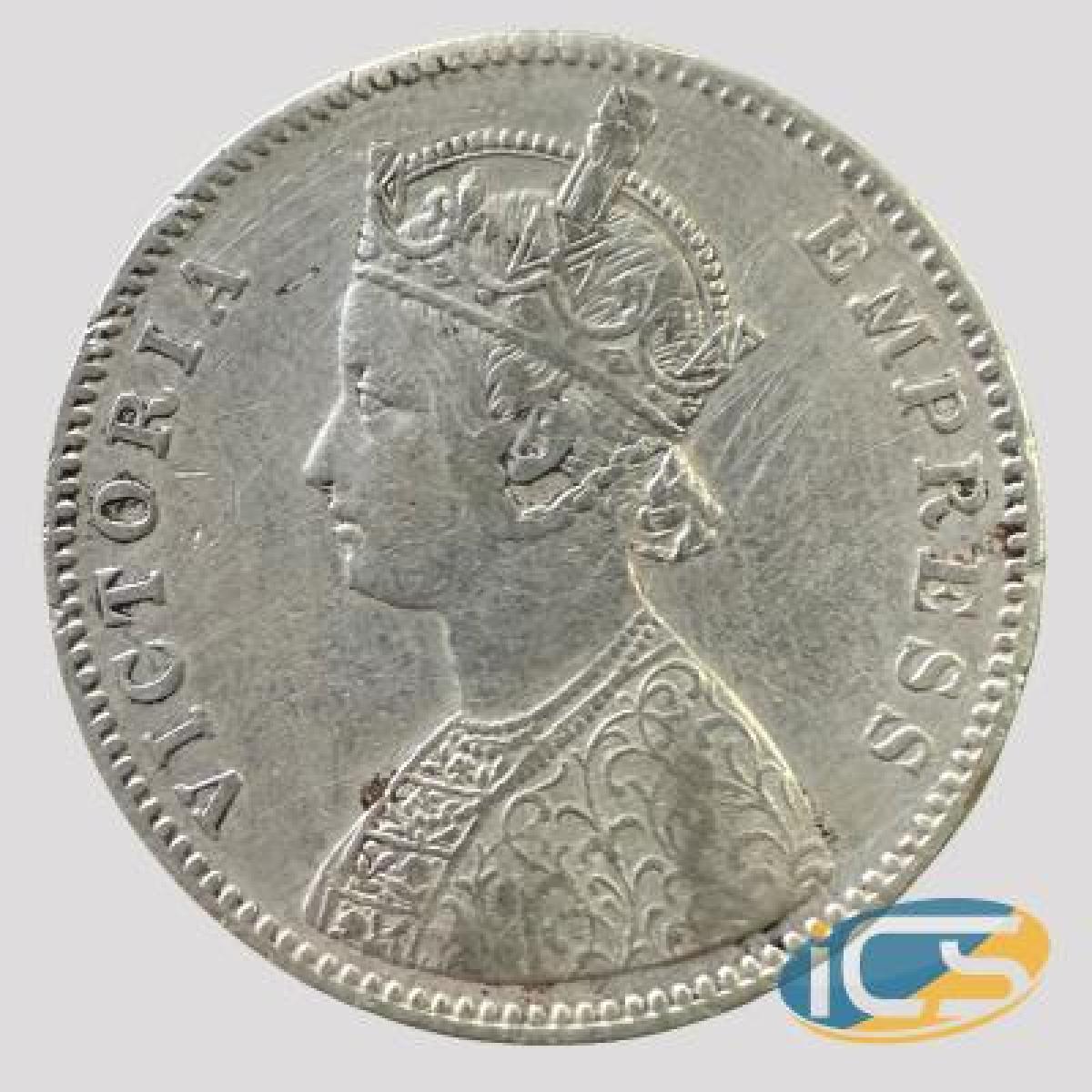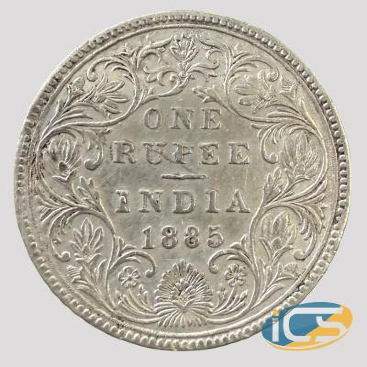 The 1885 British India Silver One Rupee (Victoria Empress) with a 'B' raised in both the top and bottom flowers is a rare, highly collectible Bombay Mint variety.