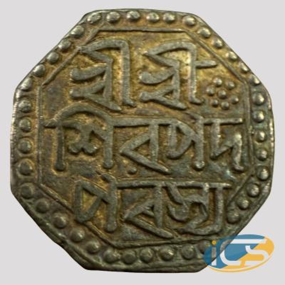 Assam, Pramatta Simha (Siu-ning-pha) (1744-1751), Octagonal Silver Half Rupee, undated, Assamese legends in three lines, Obv: Sri Sri/ Siva Pada/ Parasya, Rev: Sri; Sri Pra/matta Simha/ Nrpasya, RB# N15.2, 5.63g, 17.46mm