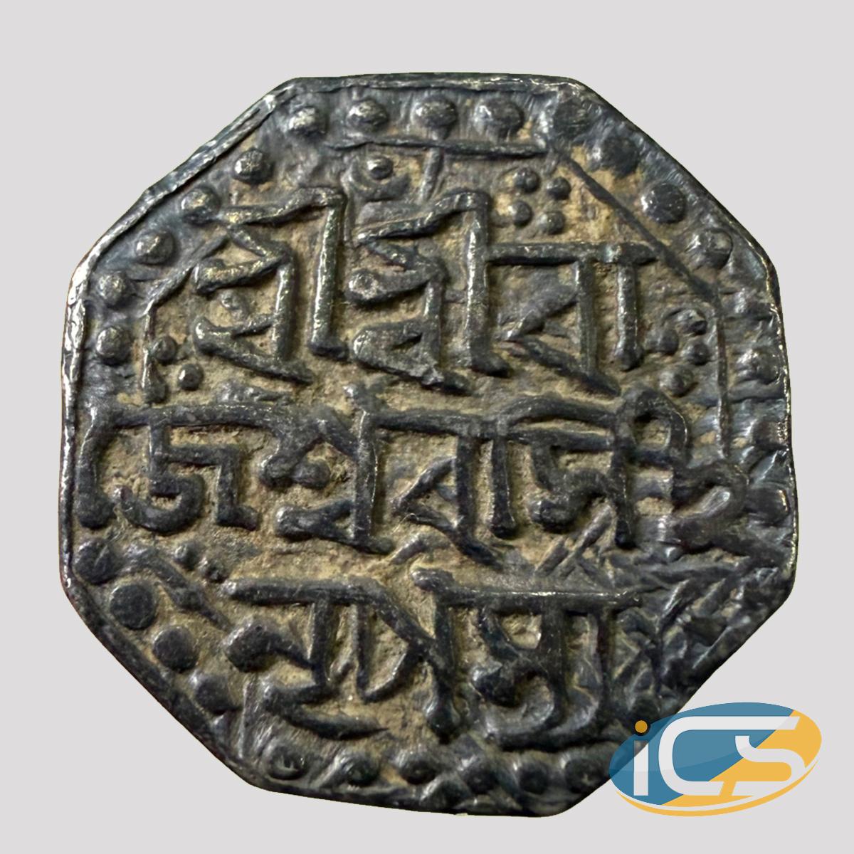 Obv: Sri Sri Si / va pada para / yanasya, Rev: Sri Sri Ra / jeswara Simha / Nripasya.