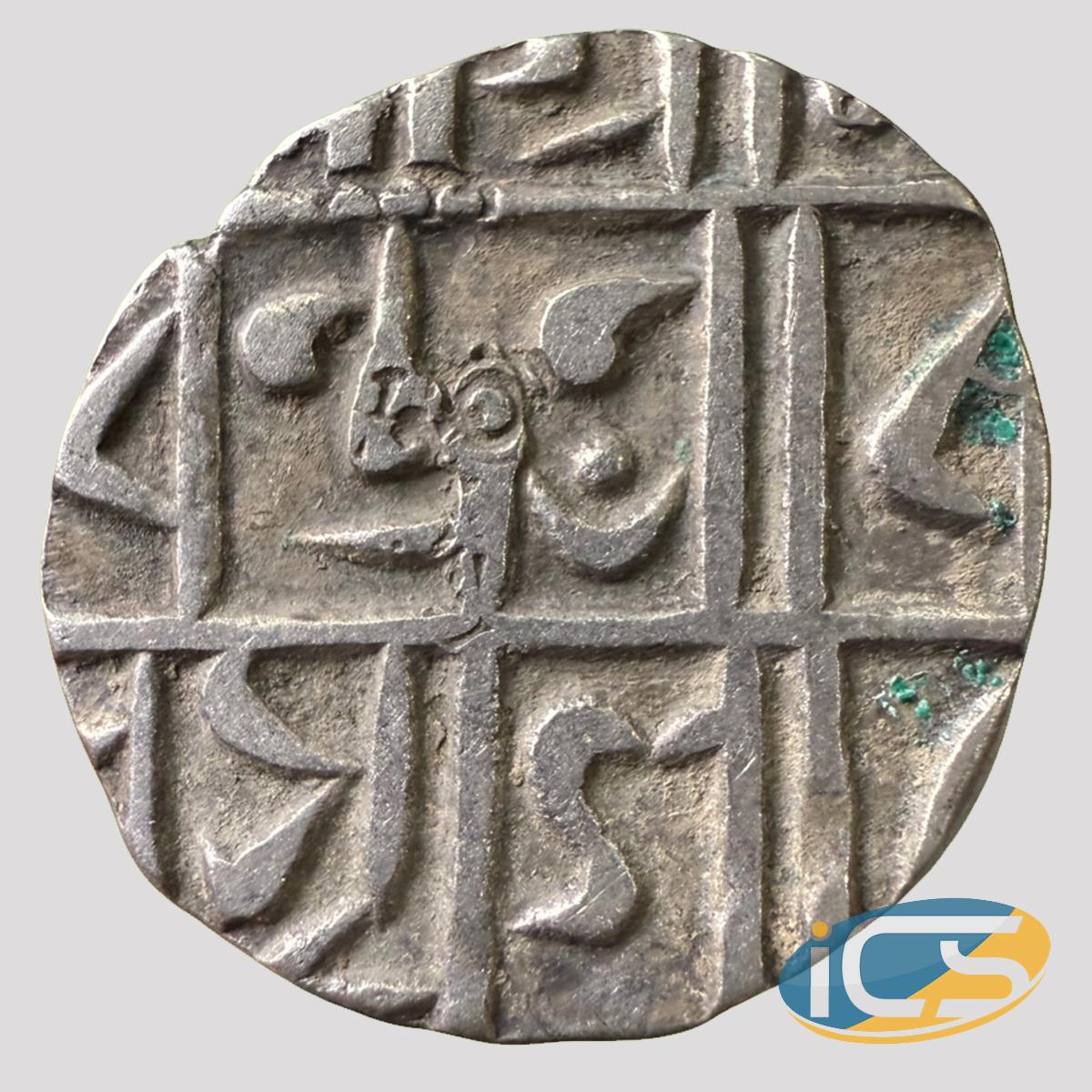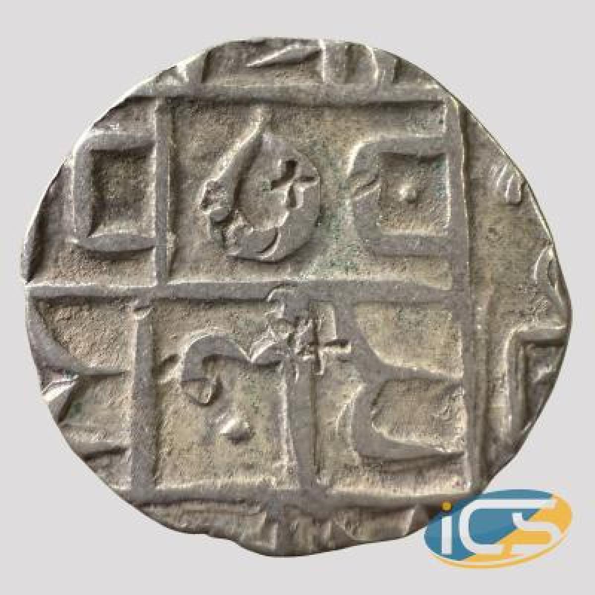 Rev: Bengali legend in 4 line “Sri Srima/t Debendra Nara/ yanasya Sake”, Crescent and dot below na